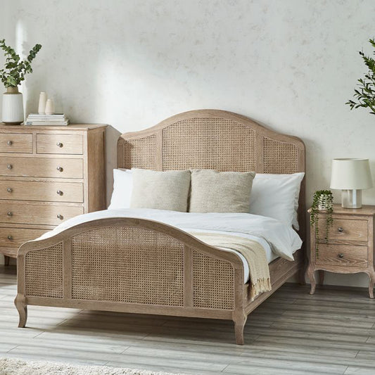 The Camille Weathered Bedroom Furniture Collection, inspired by French design, showcases elegant curves, soft lines, and ornate detailing. This exquisite range includes a 2-drawer bedside, 4+2 chest, wide chest, combination wardrobe, and dressing table with stool. Pair it with the Camille bed for a beautifully cohesive and sophisticated bedroom look.